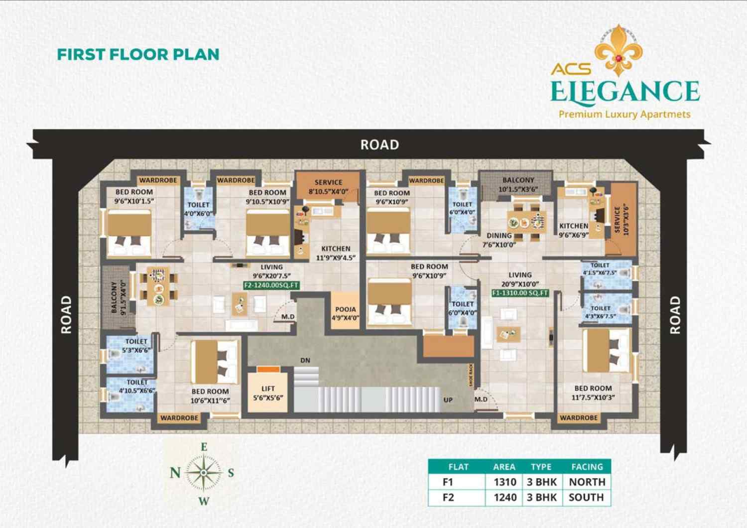 Each home at ACS Elegance is designed with optimal space utilization, ample ventilation, and abundant natural light. The apartments feature vitrified tile flooring, teakwood main doors, UPVC windows, granite kitchen slabs, premium sanitary fittings, and high-quality electrical provisions. All units are 100% Vaastu compliant, ensuring harmony, positivity, and peaceful living.