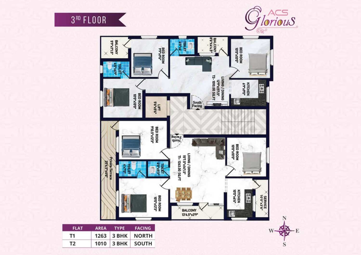 Each apartment at ACS Glorious is thoughtfully planned with excellent ventilation, natural light, and efficient space utilization. The homes feature vitrified tile flooring, UPVC windows, teakwood door frames, premium sanitary fittings, granite kitchen platforms, and quality electrical fittings, ensuring durability and a refined living experience. All units are 100% Vaastu compliant, enhancing positivity and peace of mind.