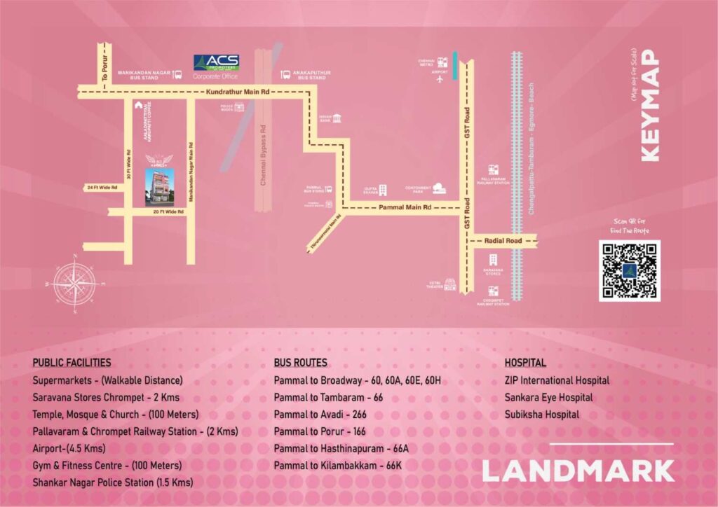 One of the key strengths of ACS Wings is its excellent location advantage. With quick access to Kundrathur Main Road, Pammal, Pallavaram, Chromepet, GST Road, and Chennai International Airport, commuting becomes effortless. Nearby schools, hospitals, supermarkets, railway stations, and public transport facilities make daily life convenient. With quality construction, smart planning, and strong connectivity, ACS Wings stands out as a reliable option for those searching for 2 BHK apartments in Kundrathur with added commercial value.